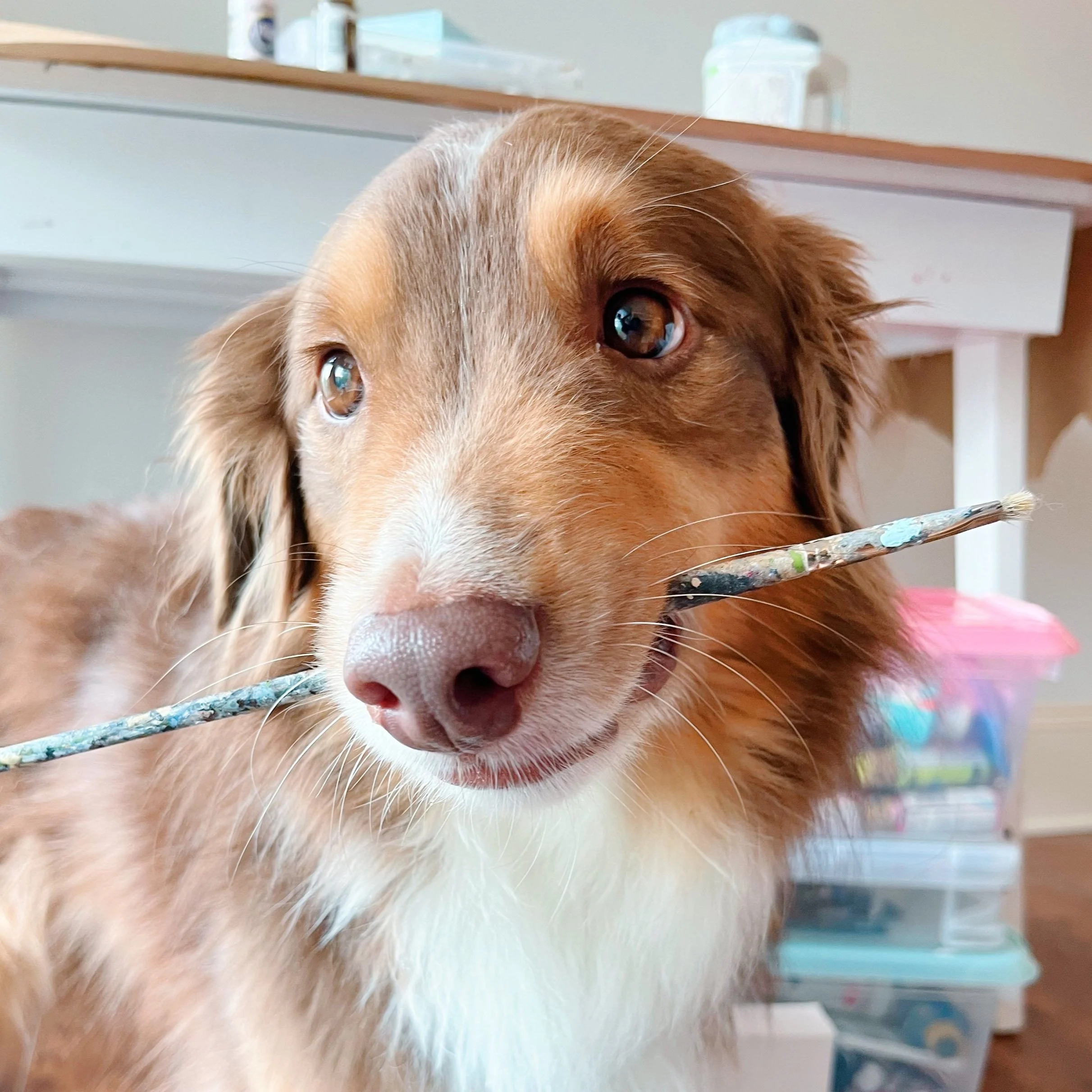 He’s my main sidekick! He helps out in the art studio and at art events. Outside of painting, we love spending time with our friends.