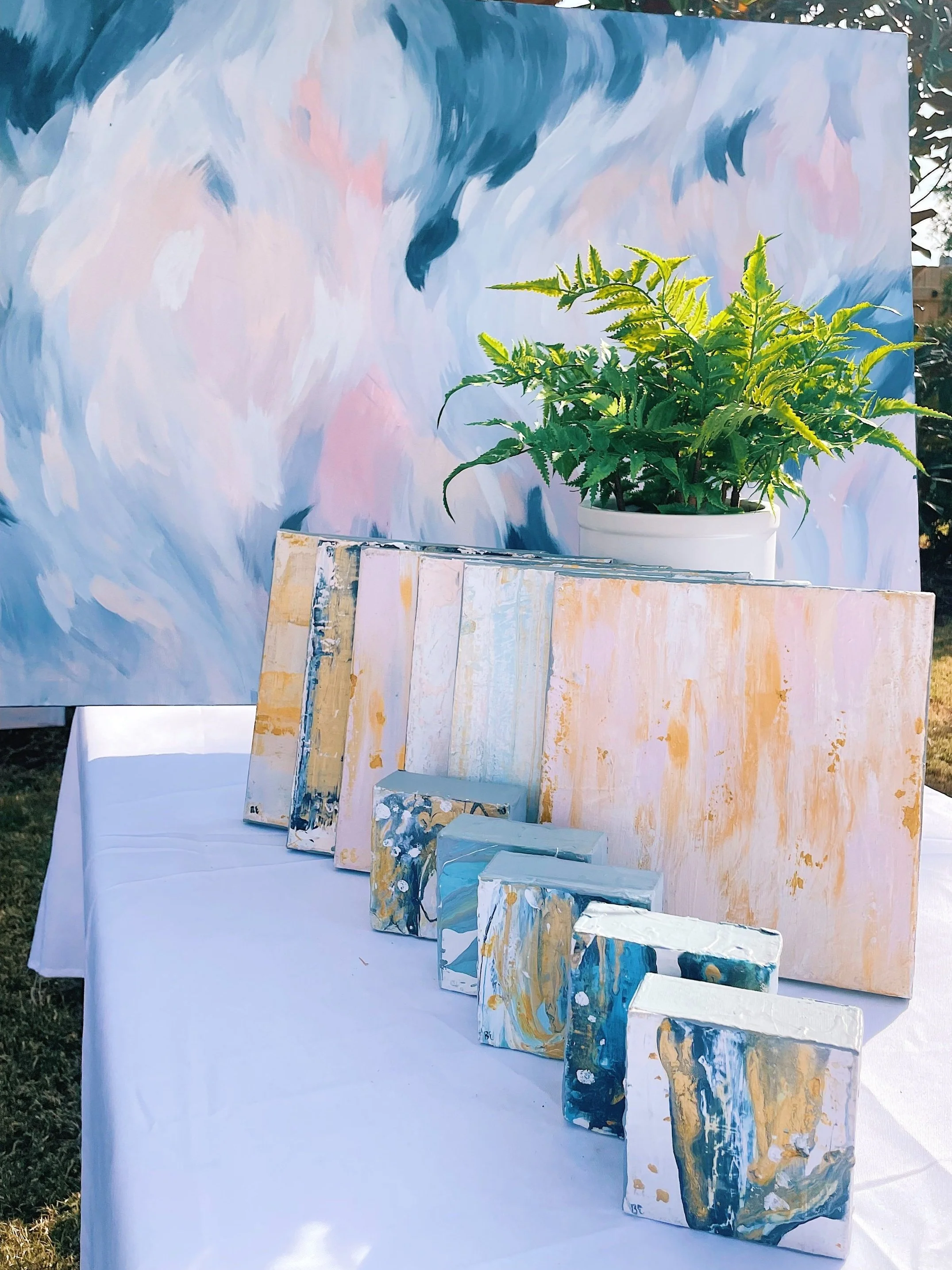 (4x4s"); sold, custom abstract paintings
